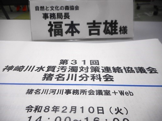 10日。国土交通省近畿地方整備局猪名川河川事務所(池田市)で、「第31回 神崎川水質汚濁対策連絡協議会・猪名川分科会」が開催されました。猪名川流域の市町や市民団体が参加して、猪名川のすいしつについて考える協議会です。自然と文化の森協会も、猪名川流域で活動する市民団体として協議会の構成員として参加しています。