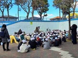 29日。阪急武庫之荘駅の北東(武庫之荘本町3丁目)にある尼崎市立武庫の庄小学校3年生103人が、武庫之荘駅から園田駅まで阪急電車に乗り、猪名川公園にやって来ました。自然と文化の森協会から7人がスタッフとして参加し、猪名川公園での環境体験学習をコーディネートし子ども達の活動を支援しました。