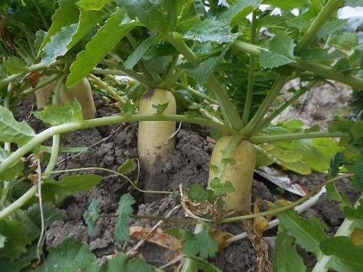 田能の農園で大根の収穫体験を実施