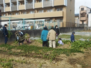 農作業は、一つの畑を全員の協働作業で手入れし、無農薬栽培にチャレンジします。田能地区に伝わる伝統野菜の“田能のさといも”の栽培。小松菜などの葉物野菜や大根などの栽培に取り組みます。栽培した作物は、収穫体験イベントでの活用や販売をして、苗・肥料代や農具の購入などの維持管理費に充て、余剰作物は作業に参加したみなさんに配布します。