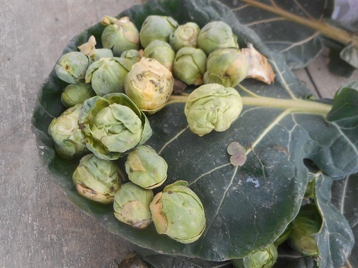 農園では、「やさいクラブ(冬野菜)」のみなさんのブロッコリーが脇芽を伸ばして収穫時になっていました。朝から降り続いた雪が乗って、凍っていました。農業スタッフが植えている芽キャベツもかわいい芽をたくさんつけていました。春に収穫時を迎えるタマネギも葉を伸ばしていました。