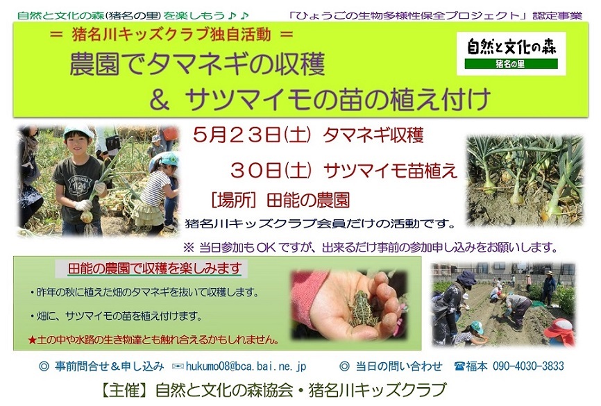 ※ 3月から毎週水曜日に実施してきた(公財)ひょうごコミュニティ財団の支援を受けた新型コロナウィルス対策の「子どもの居場所作り」のための猪名川キッズクラブの臨時自然体験活動は、今回で一旦終了します。しかし、5月31日まで学校や幼稚園の休校・休園が継続されました。今後は、定例活動を中心にした猪名川キッズクラブの活動が「子どもの居場所。親御さんのホッとできる場所」になればと思います。