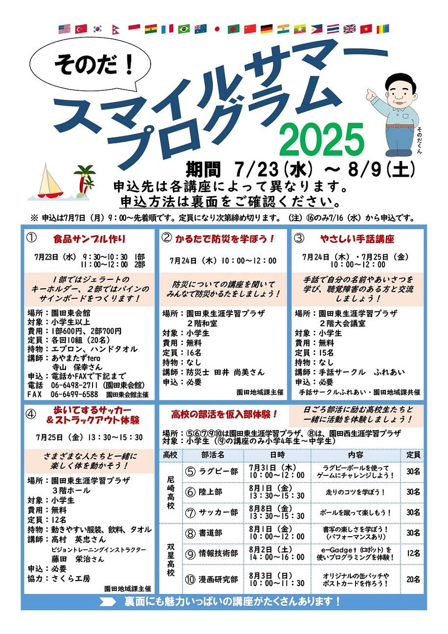 そのだ!スマイルサマ−プログラム2025(7/23〜8/9)ご案内 [尼崎市園田地域課]