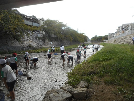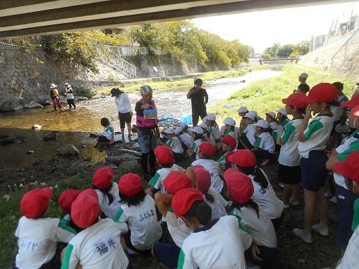最後は、子ども達が捕まえた生き物の解説です。テナガエビも捕まっていました。子ども達は「藻川の時よりも生き物がいっぱい捕まえられた」と嬉しそうでした。子ども達の通う学校のすぐ横を流れる庄下川です。「たくさんの生き物が棲む素敵な庄下川をこれからも守り続けていくためにどうすればよいか」、みんなで考えてもらえたら嬉しいです。