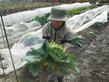 14日。やさいクラブの最初の収穫でした。今回は冬野菜に限定してのやさいクラブです。20組の募集でしたが、わずか1日で募集枠が埋まってしまいました。この日のメインは、丸々と育ったキャベツです。子ども達は、「重い!!」と言いながら持っていました。ブロッコリーも大きく育っています。