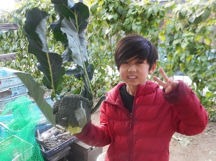小松菜も収穫です。子ども達が楽しそうに収穫します。オプションでサンドマメの収穫もありましたが、大好評でした。このあとは、ハクサイや大根の収穫が続きます。ブロッコリーは、3月末頃まで次々と脇芽が出て来て何度も収穫を楽しんでいただけます。新鮮な美味しいお野菜をいっぱい味わってください。