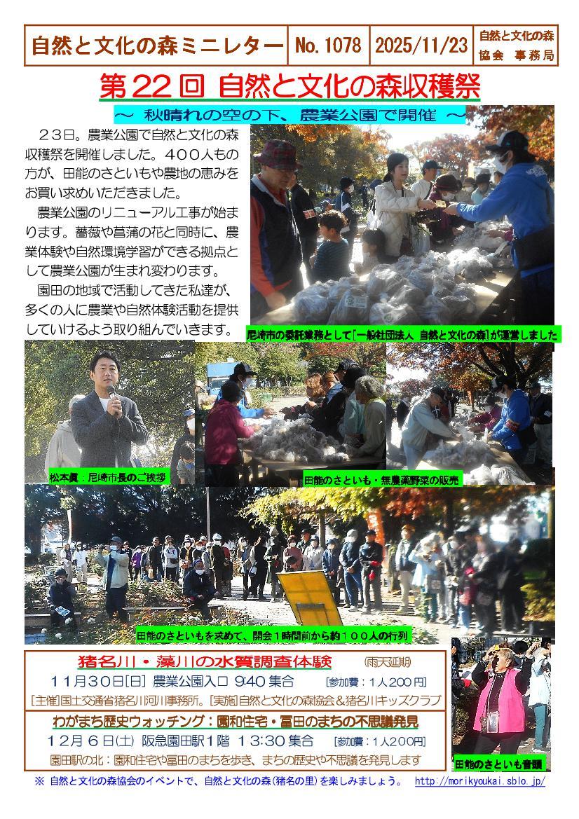 自然と文化の森ミニレターNo.1078(11/23)第22回自然と文化の森収穫祭
